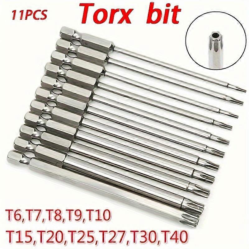 11Pcs precision star plum bit set, S2 alloy steel, 75mm long, with hexagonal socket, for vehicle and electrical maintenance