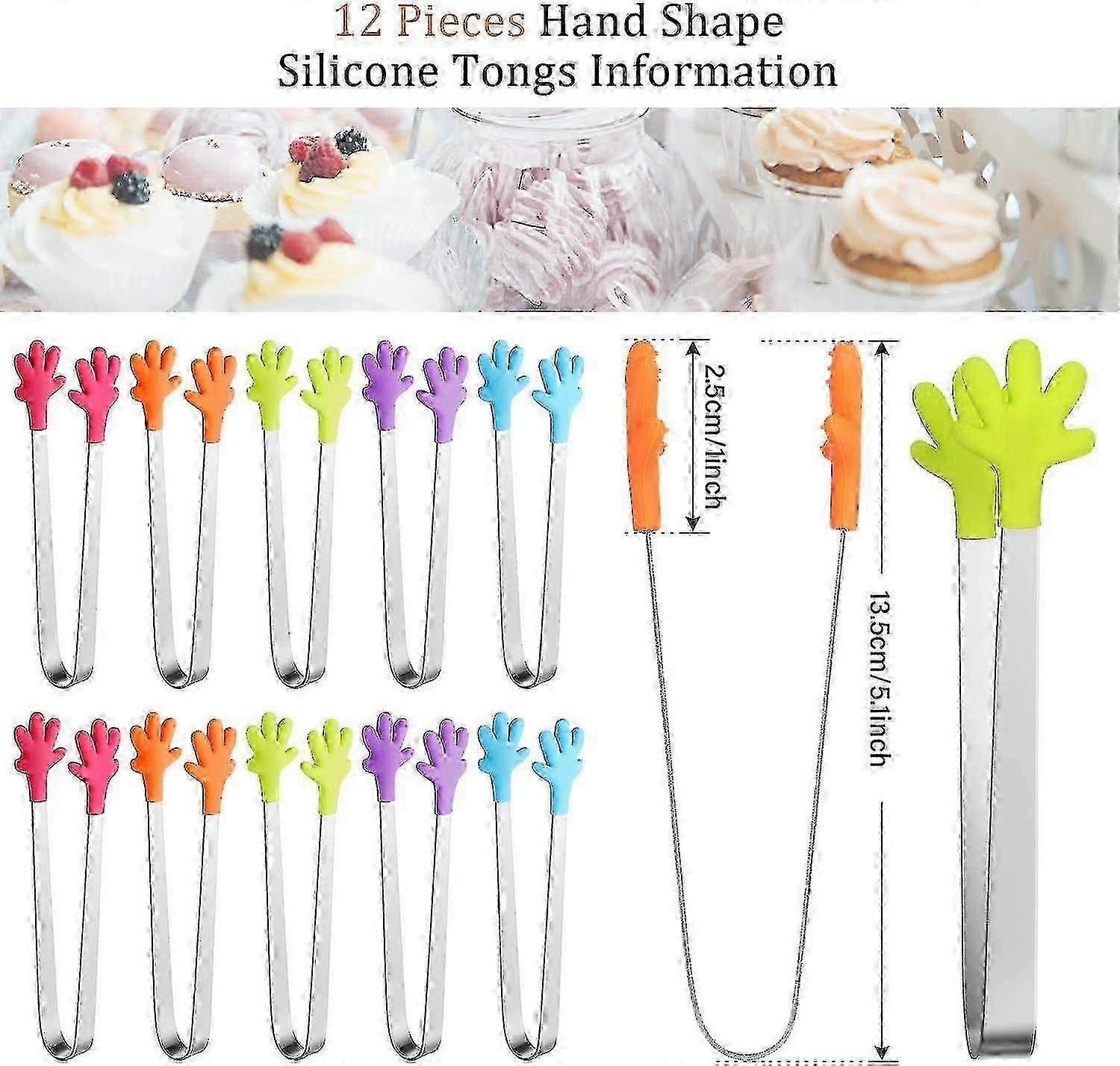12 Pcs Silicone Mini Tongs, 5inch Hand Shape Food Tongs