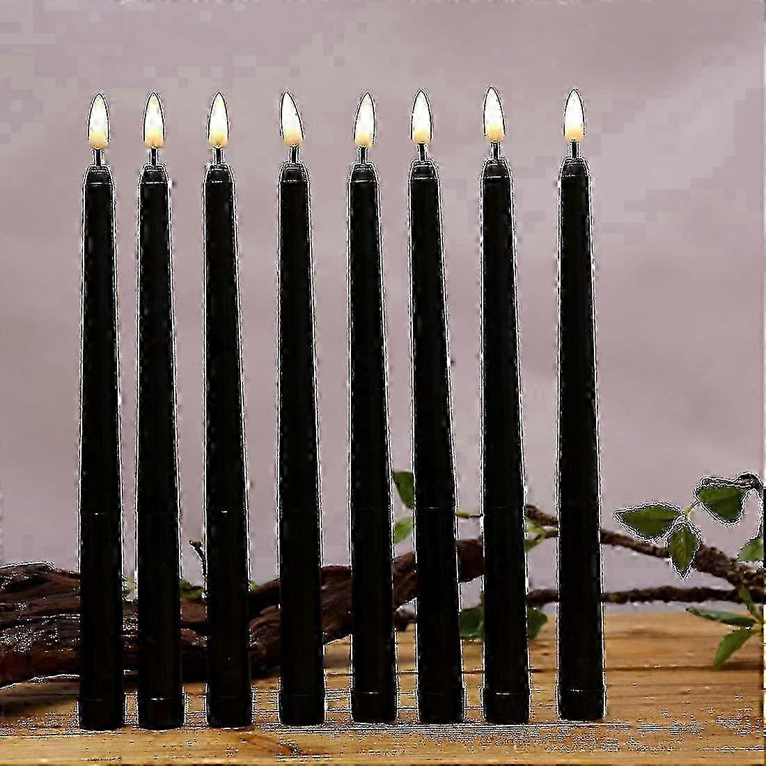 12 Inch Black Bodied Flameless Taper Candles, Warm White LED Light, Battery Operated Realistic Christmas Decor