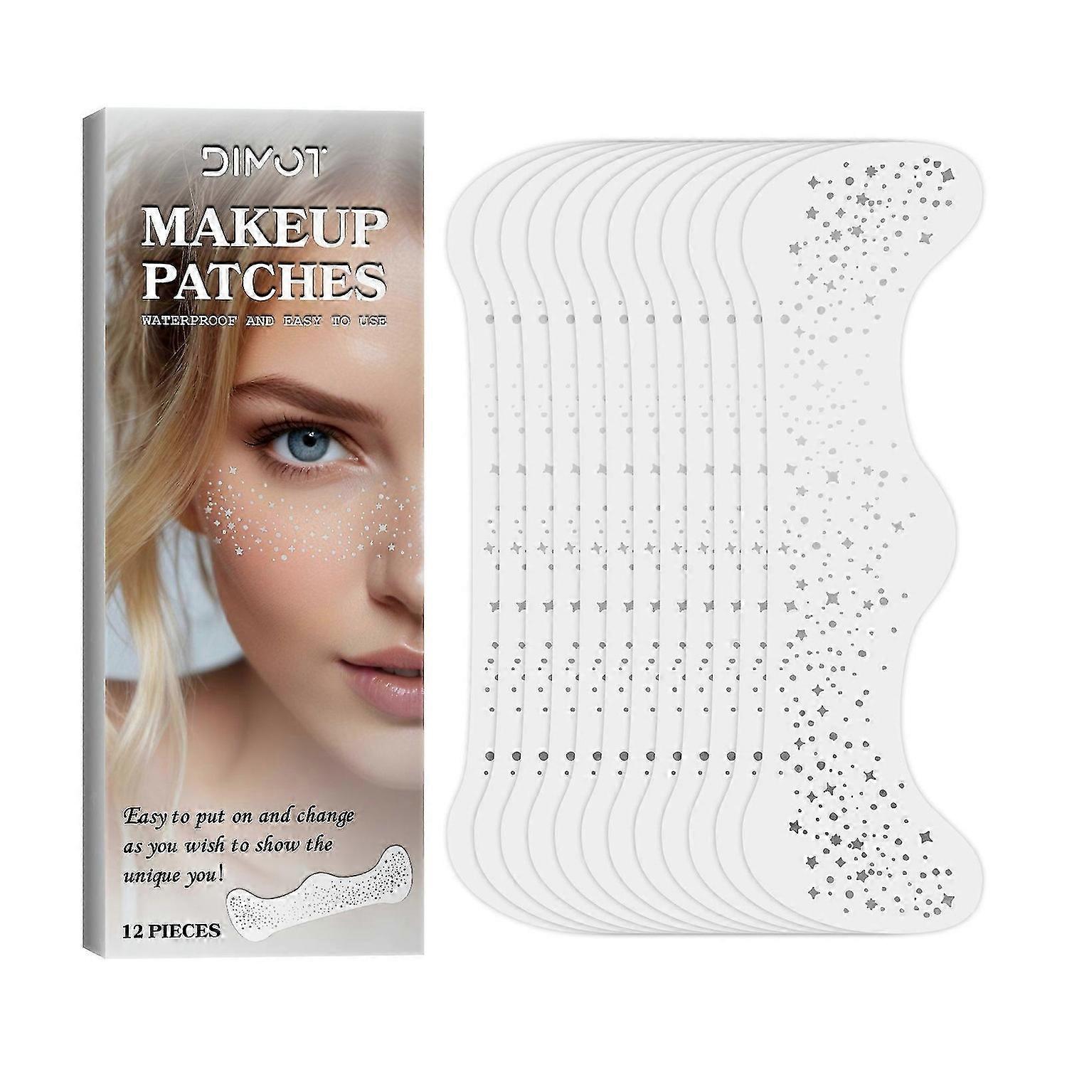 12 pcs Holographic Multichrome Glitter Freckles Face Tattoo, Waterproof Sparkle Face Glitter Speckles Patches for Women, Cute Star Glitter Temporary T