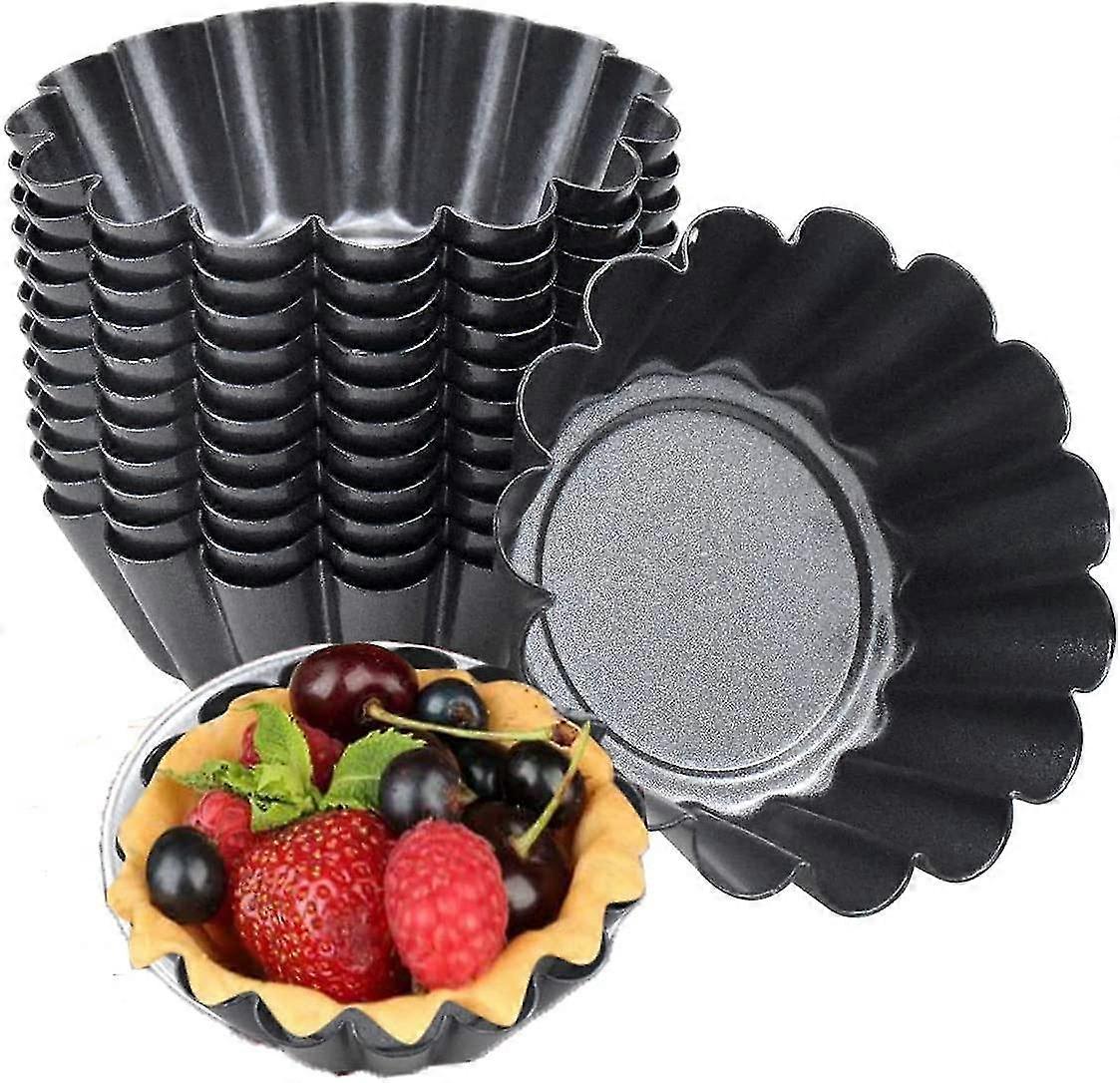 12 Pcs Reusable Egg Tart Molds Carbon Steel Tart Tart Pan Nonstick Egg Tart Mold Cupcakes Quiche Mold For Pies Puddings Muffins Diy(black)