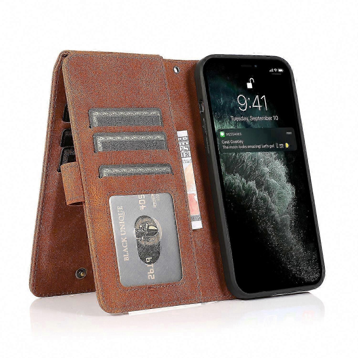 12 Mini Wallet Case with Card Holder, Cash Pocket, Kickstand, Hand Strap & Zipper - Lightweight Leather Design