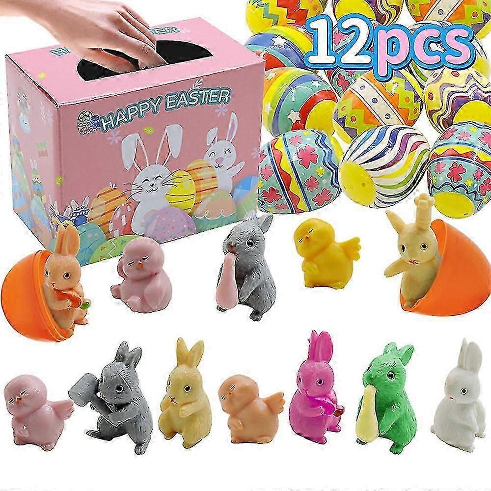 12 Pack Surprise Eggs Prefilled With Rabbit Bunny Toys For Kids - Easter Eggs Hunt Easter Basket Stuffers Fillers Easter Party Favors