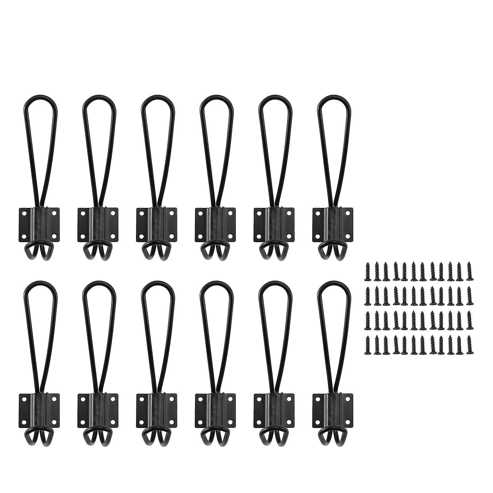 12 Pack Rustic Enterway Hooks, Black Vintage Double Coat Hangers, Hard Industrial Heavy Duty Hooks