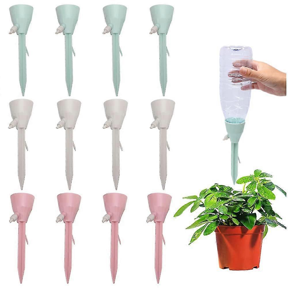 12 Pack Plant Watering Devices, Automatic Watering Spikes with Valve Control Switch(4Pink+4Green+4Beige)