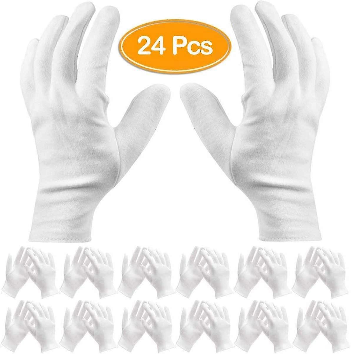 12 Pairs White Cotton Gloves Work Gloves Cosmetic Moisturizing Gloves 12 Pairs L White Cotton Gloves/thin