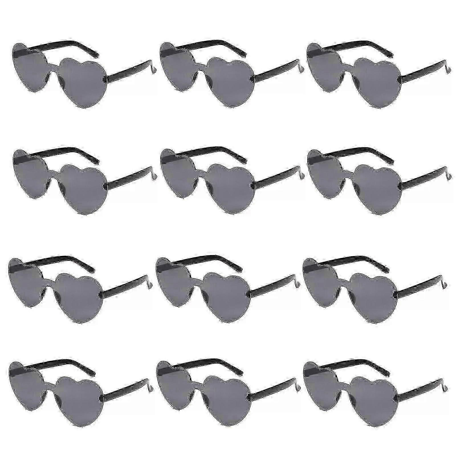 12 Pairs Heart Shape Sunglasses, Rimless Heart Glasses Bachelorette Sunglasses Transparent Candy Color Heart Sunglasses For Women Teens Party Favors