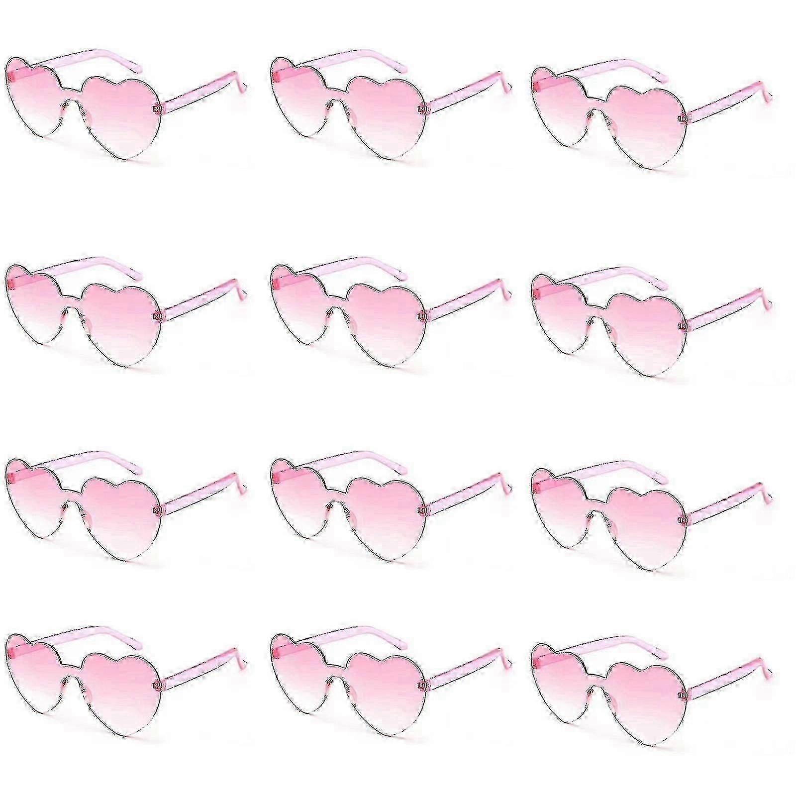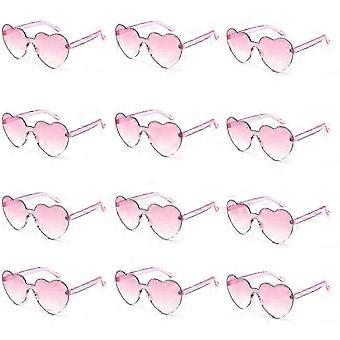 12 Pairs Heart Shape Sunglasses, Rimless Heart Glasses Bachelorette Sunglasses Transparent Candy Color Heart Sunglasses For Women Teens Party Favors