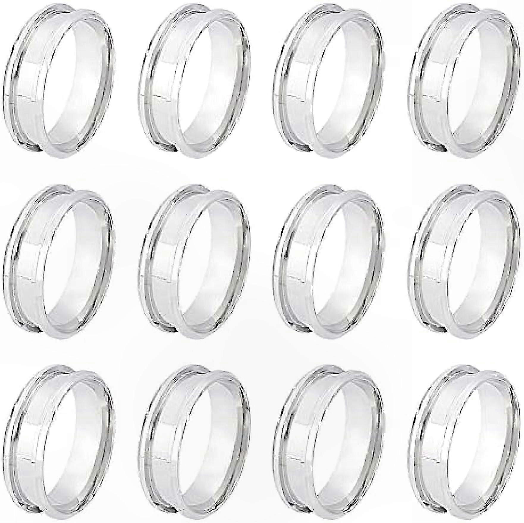 12-Pack Size 12 Stainless Steel Grooved Ring Blanks with Velvet Pouches for Jewelry Crafting Projects