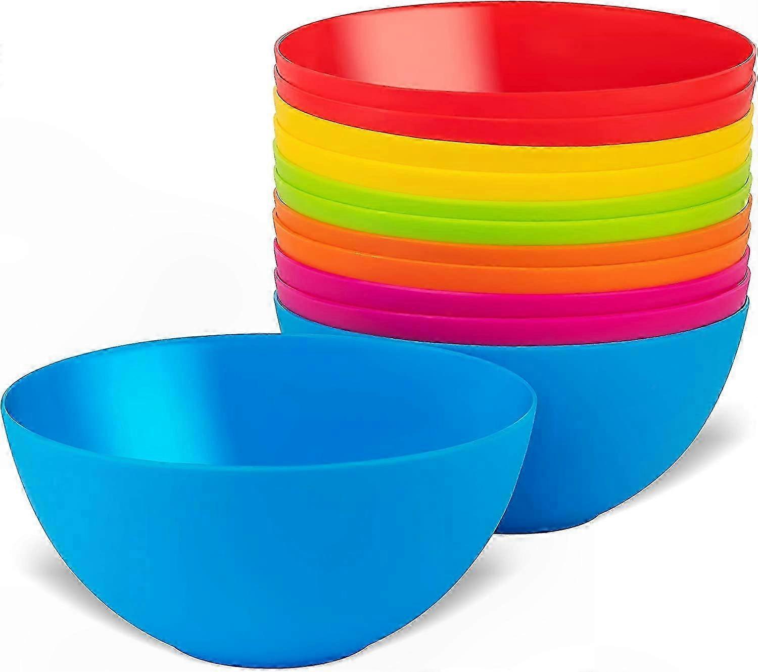 12-Pack BPA-Free Plastic Bowls, 24 Oz Microwave & Dishwasher Safe Cereal Bowls for Kids, Bright Colors