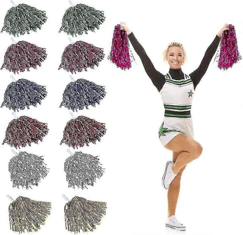 12 Pack Cheerleader Pompoms (mixed Colors) Girl Fluffy With Metal Band With Plastic Handle, Cheerleader Pompoms For