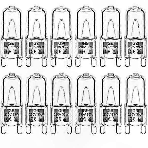 12-Pack Dimmable Halogen Bulbs, 33W 230V, Warm White 2800K, 380lm Clear Capsule, No Flash or Flicker