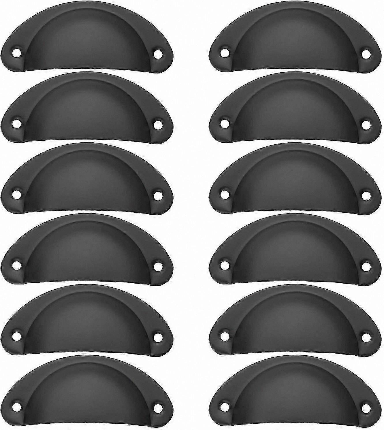 12-Pack Classic Shell-Style Drawer Handles for Kitchen Cabinets, Curved Retro Iron Cabinet Knobs 8.2cm x 3.5cm, Furniture Pulls with Screws - Black Fi
