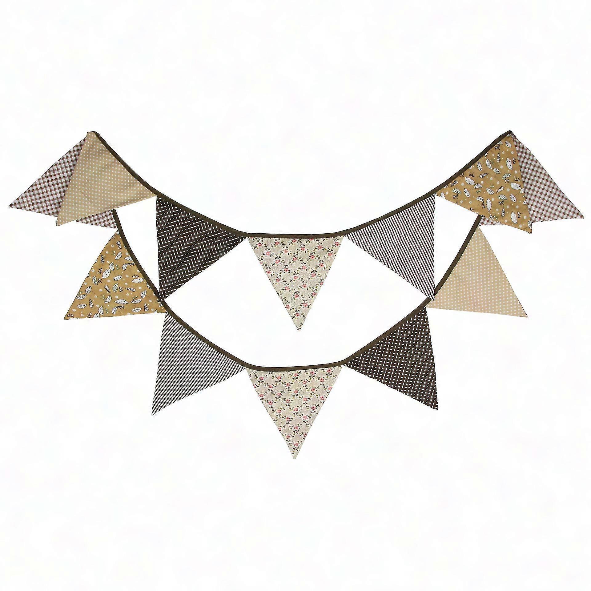 12 Pack 3.2m Double Sided Cotton Triangle Nursery Bunting Banners Brown