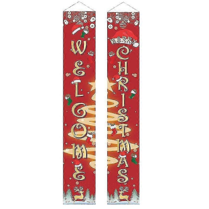 (12) Merry Christmas Santa Party Hanging Banner Garden Banners Xmas Door Decoration