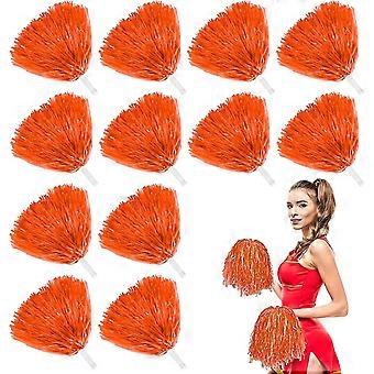 12pcs Cheerleading Pom Poms With Cozy Handle, Adorable Cheer Plastic Poms Pompoms Cheerleader Pom Poms For Kids Adults Cheering Squard Team Spi