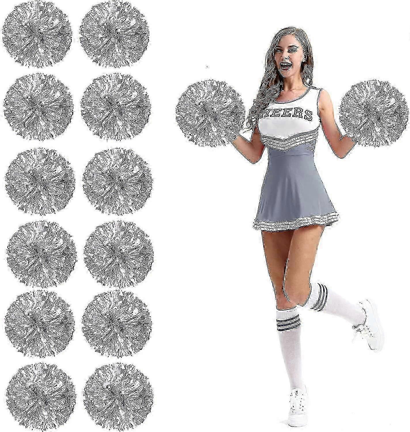 12pcs Cheerleading Pom Poms With Finger Holes Metallic Foil Cheer Pom Poms G