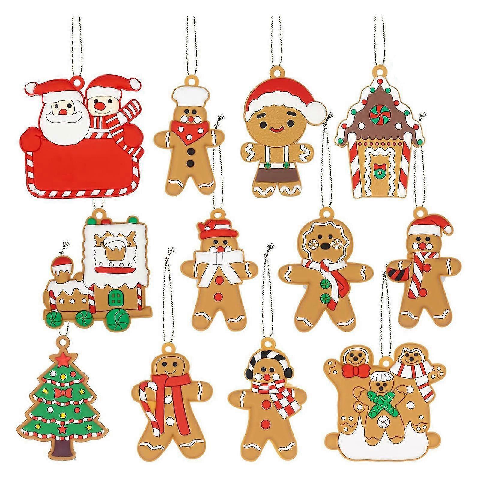 12 Pcs Gingerbread Man Pendant Christmas Themed Ornaments Santa Claus Hanging Ornaments with Lanyard for Xmas Tree Party Decor