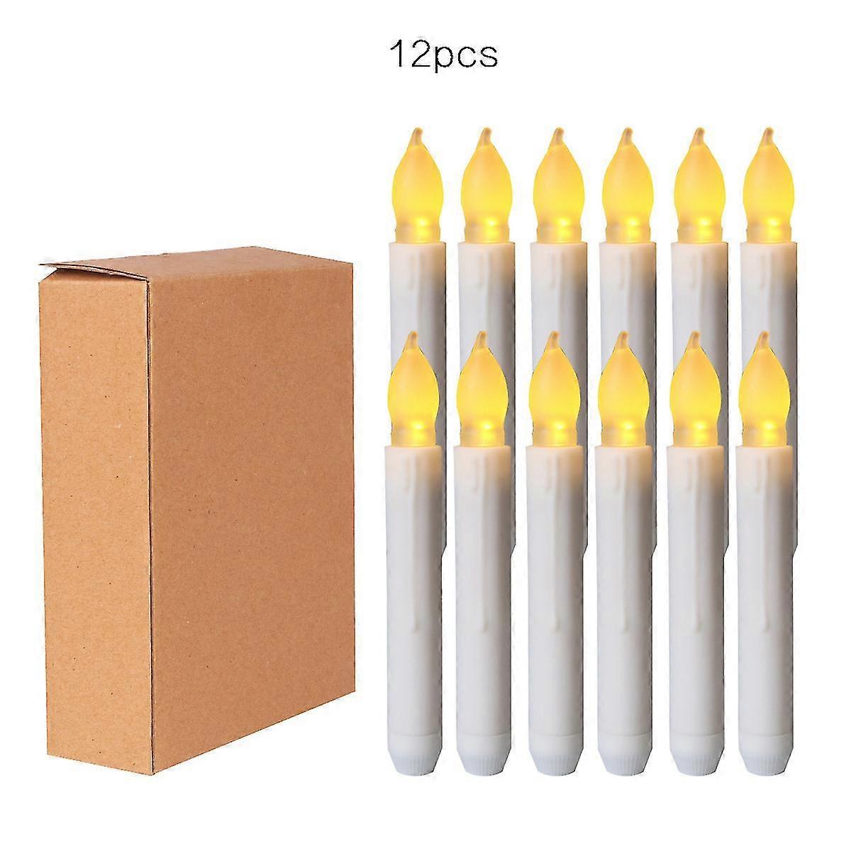12pcs Halloween Floating Candles, Led Flameless Taper Candles,with Warm Yellow Flickering Light, Dripless Candles For Halloween, Christmas bd