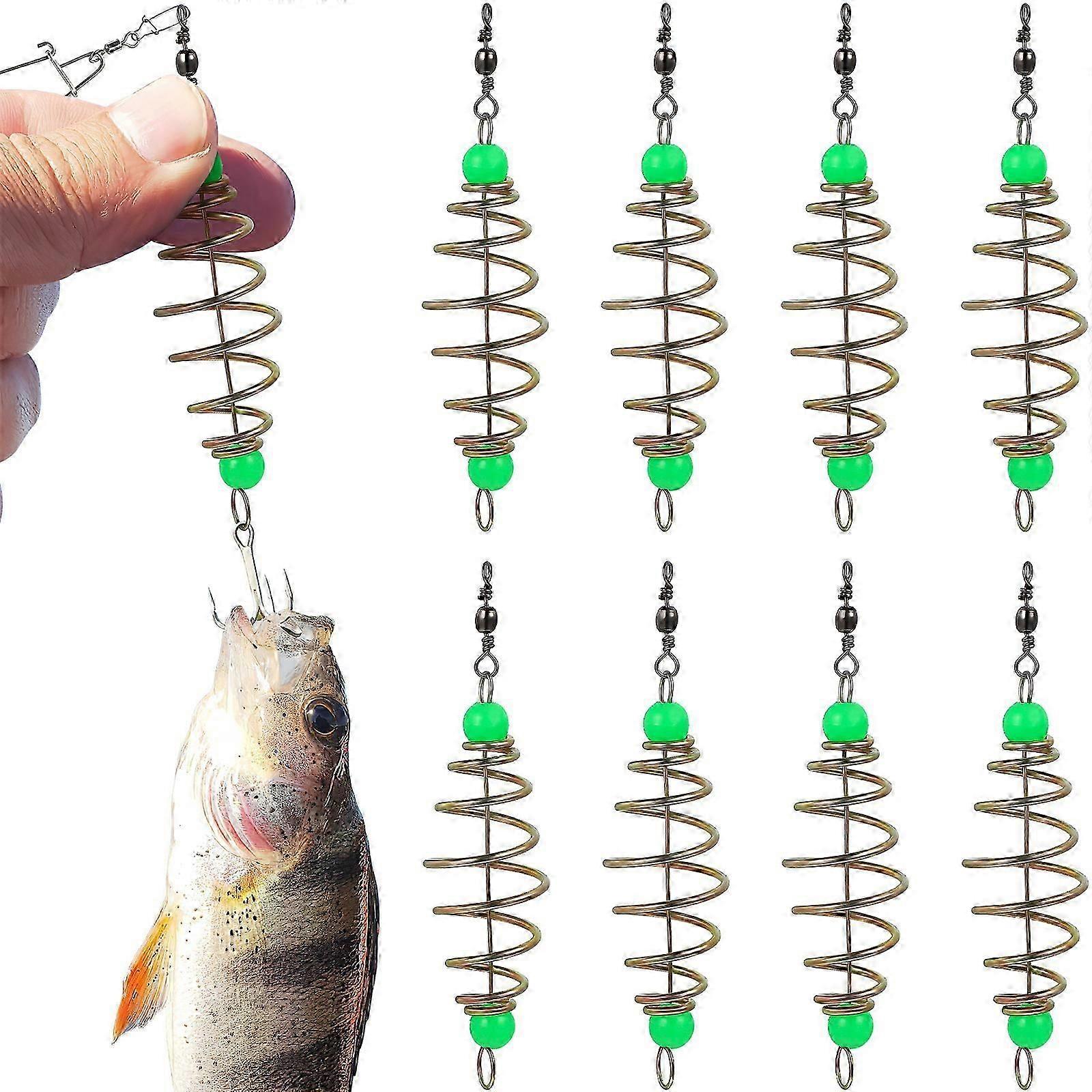 12 Pcs Fishing Feeder Baits Cages Olive Shape Spring Fishing Feeder Bait Holders with Luminous Pendant Beads
