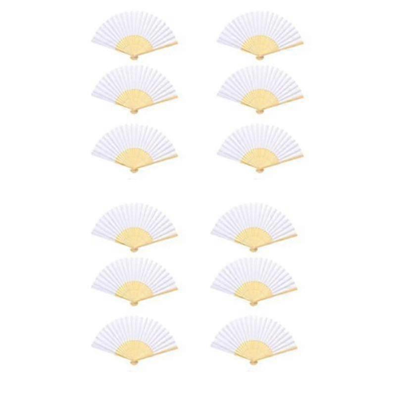12 Pcs Hand Fan White Fan Paper Fan Wedding Fan Pocket Fan