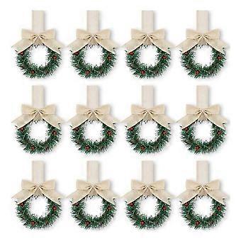 12PCS Christmas Kitchen Cabinet Wreaths with Ribbon & Berries - Small Hanging Wreaths for Doors & Windows Christmas Decor