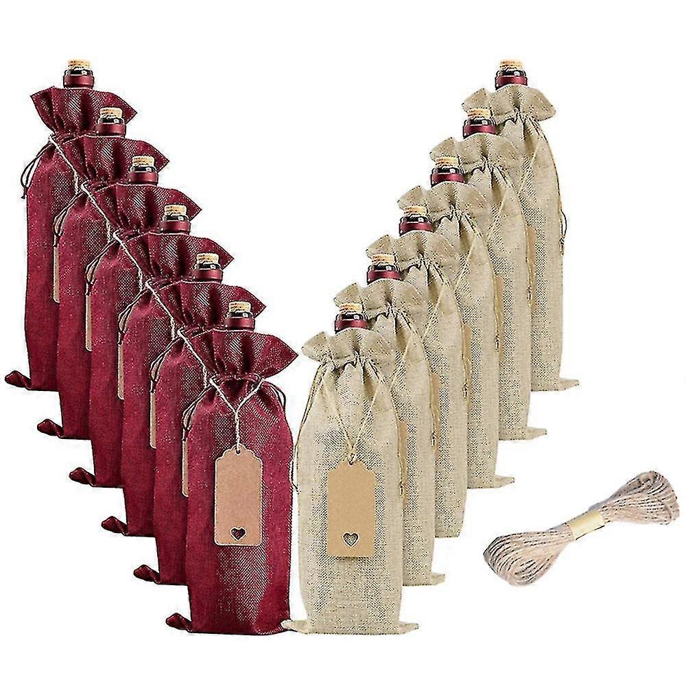 12 Pcs Burlap Wine Bags Wine Gift Bags,wine Bottle Bags With Drawstrings,tags & Ropes,reusable Wine Stcyv