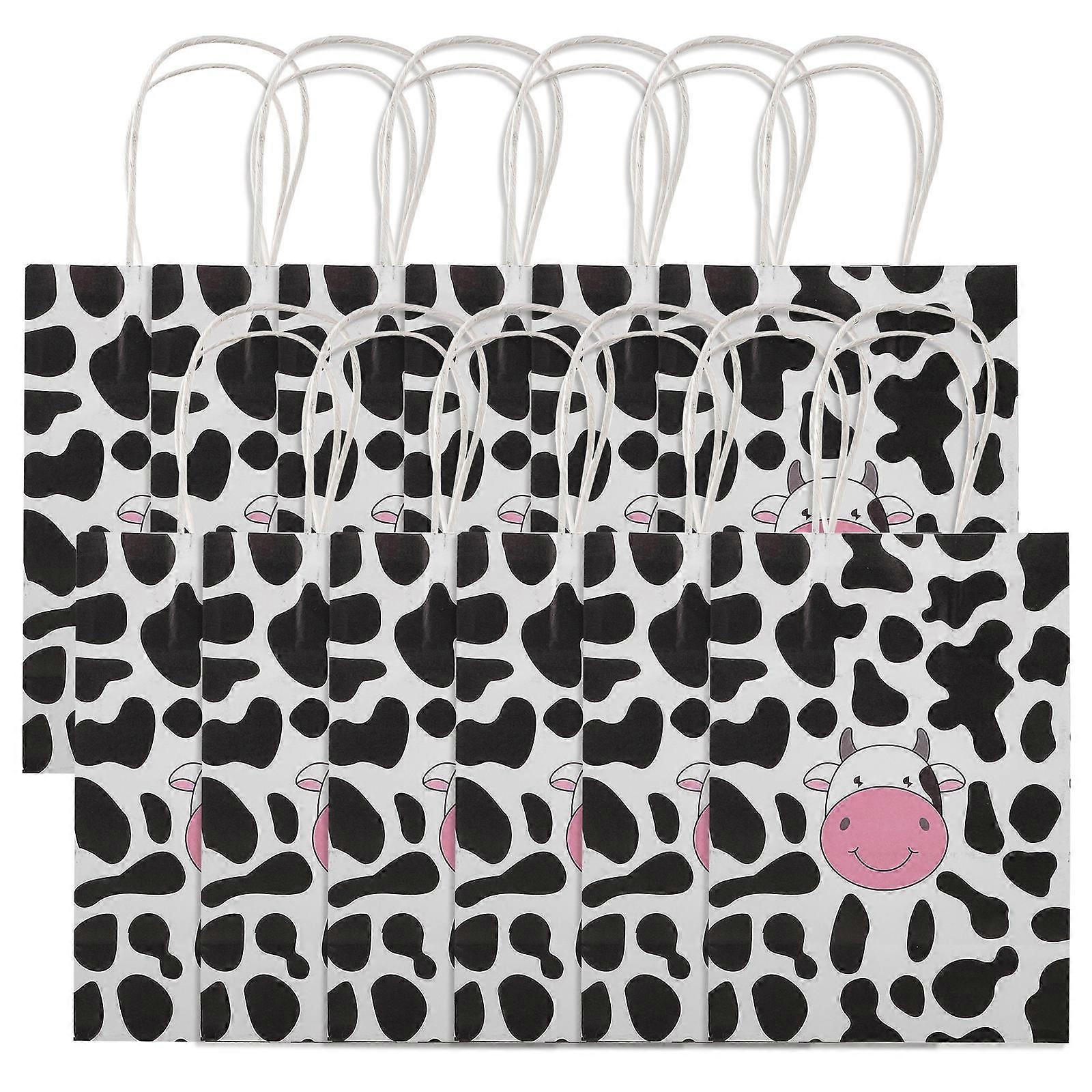 12pcs Kraft Paper Bags with Handles, Portable Packaging for Parties, Birthdays, Weddings, Holidays – Cow Print Design for Special Occasions