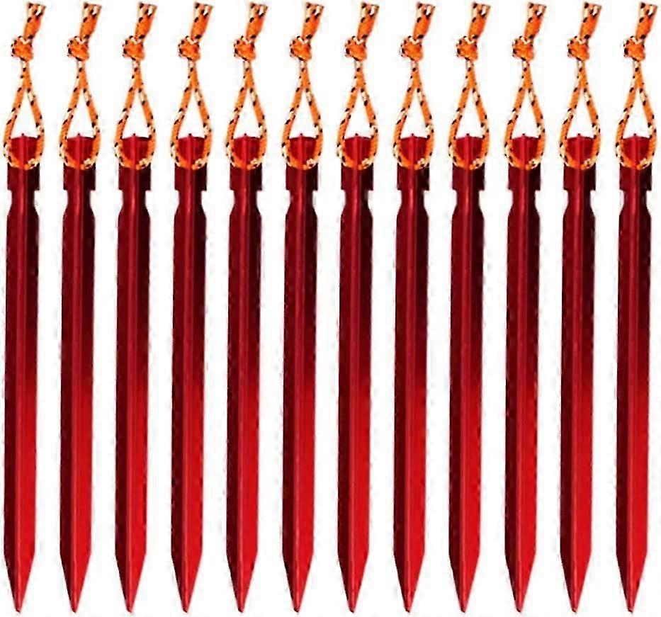 12 Pieces Tent Pegs, Y-shaped Aluminium Alloy Camping Stake Nail with Reflective Ropered