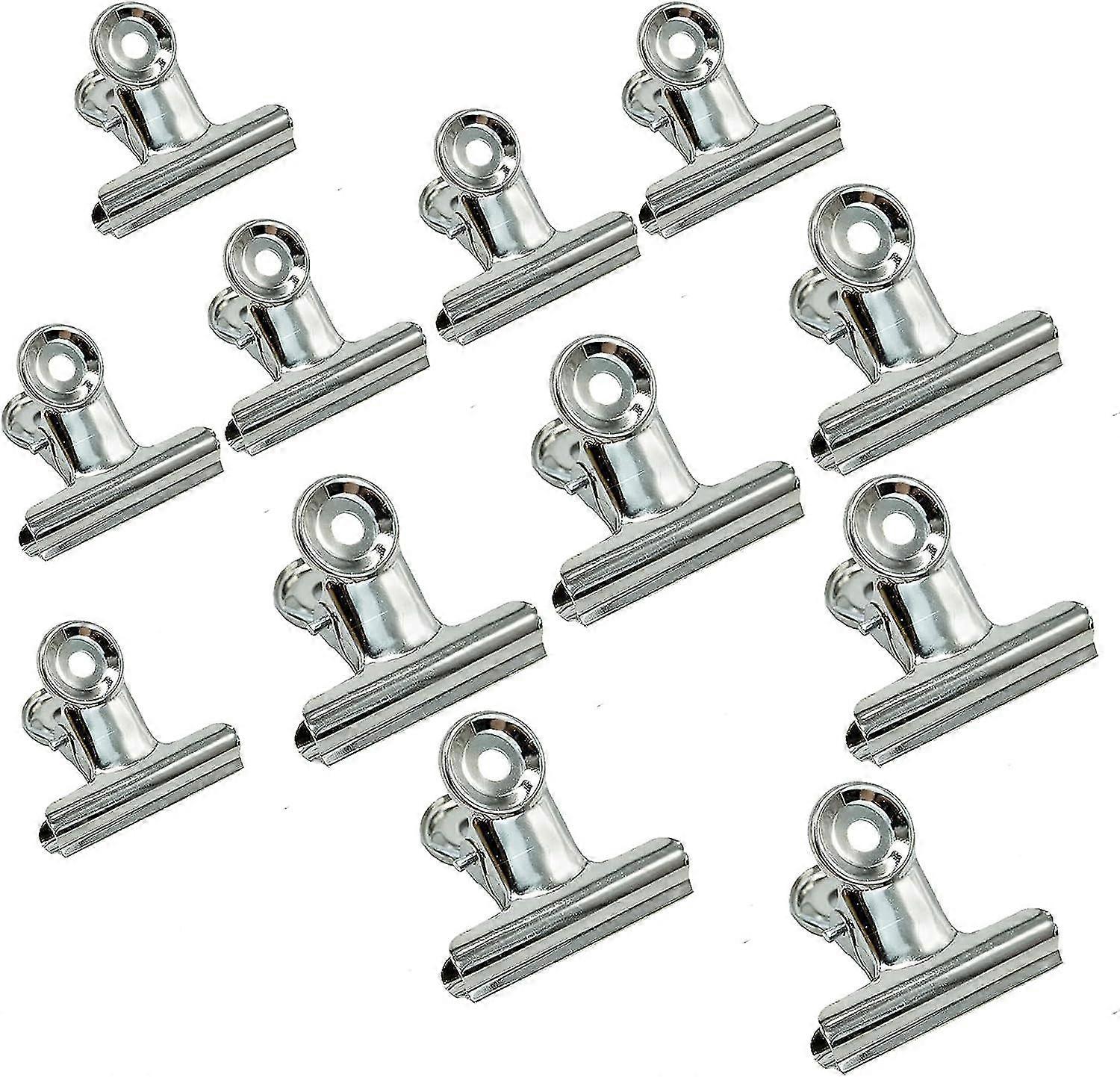 12 Pieces Bulldog Clip Metal Photo Clip, Silver (6pcs 50mm, 6pcs 63mm)