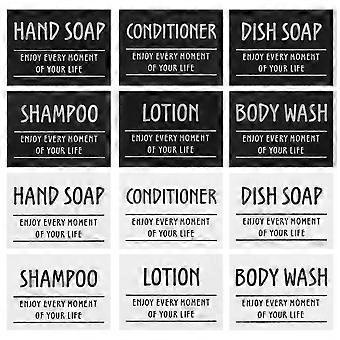 12 قطعة تسميات الحمام تسميات التنظيم ملصقات زجاجة قابلة لإعادة التعبئة مقاومة للماء تسمية لشامبو صابون اليد