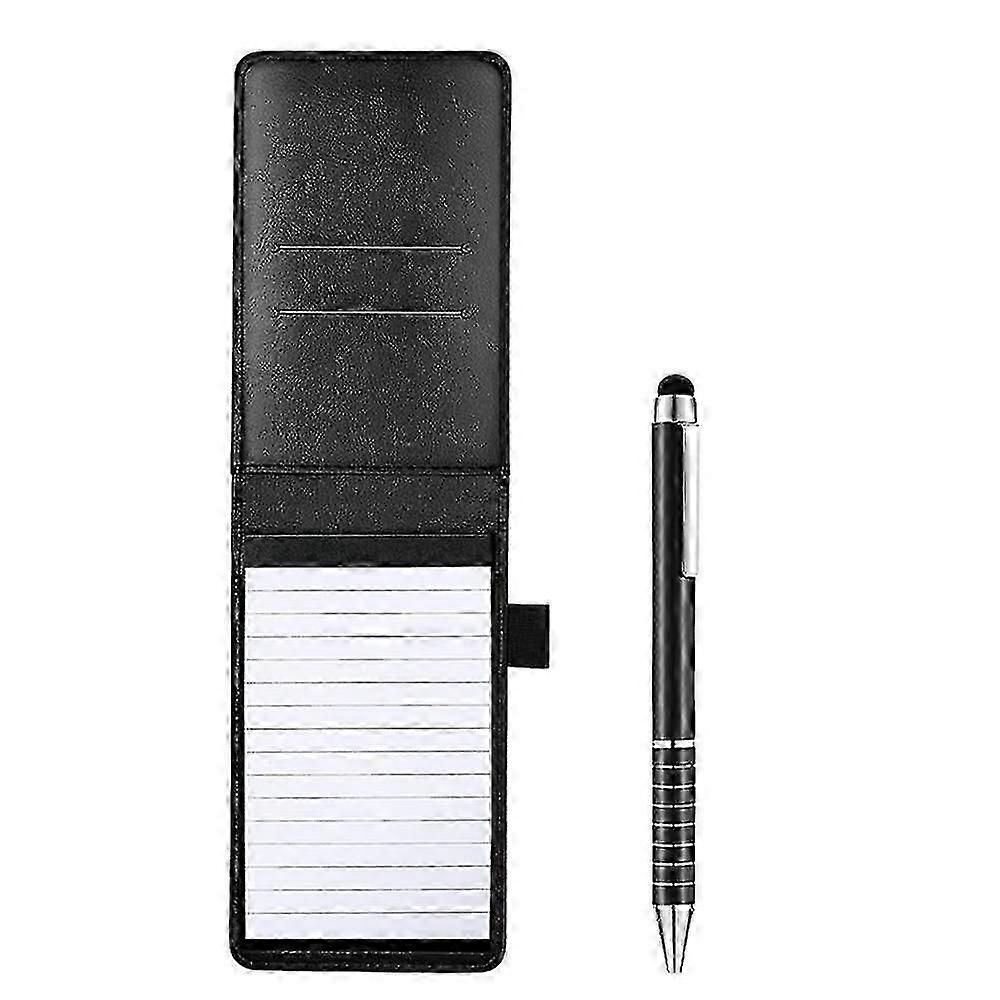 [Compact Design]The 12pcs mini notepad holder set with 50 lined sheets, a metal pen and 10 memo book refills with 30 per pad,all-in-one design features 2 card slots and a pen holder, which is good for credit cards, passport, and pen; Paired with a slot for a 3 x 5 inch top bound notebook, it's a must-have for your memos, business meetings and creativity on the go [Portable Pocket Notepad ]The pocket journal notebook which is mini in size,light in weight but providing enough writing area for all your thoughts and writing needs, what is more, it is convenient to put into your pocket,purse, bag when you in travel or at school.Seize all the creative ideas [We Only Like Premium Products]The small pocket notepads are made of good-quality paper material and PU leather sturdy, durable and long lasting,smooth to write,the wax thread keep the small notebook be timeless elegance.It's also a best gift for your lovely friends and family [Widely Use]Whenever you're at work, home or school. They are ruled pages, can write comfortably, good for business, conference, meeting, office and travel.This small notebook is perfect for business executives, students, nurse,police,adults, scientists, and people in many other fields of work and study Specifications: Colour:black Material:PU+metal+paper Package Contents: 1 * Mini pocket notebook holders with 50 lined sheets 1 * metal pens 10 * Refillable memo book refills Only the above package content, other products are not included. Note: Light and different displays may cause the color of the item in the picture a little different from the real thing. The measurement allowed error is +/- 1-3cm.