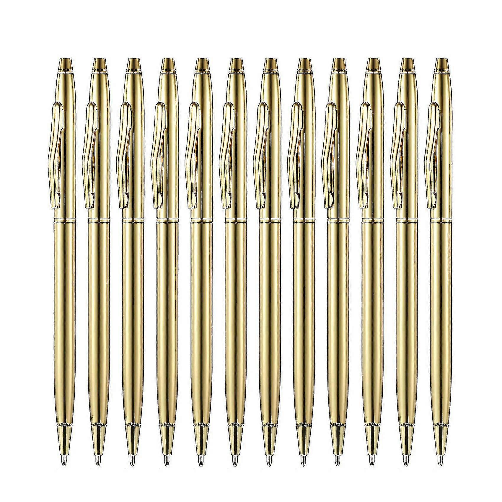 12 Pcs Gold Slim Ballpoint Black Ink 1 Mm Medium Point Metallic Retractable For Students Teachers O-haoyi