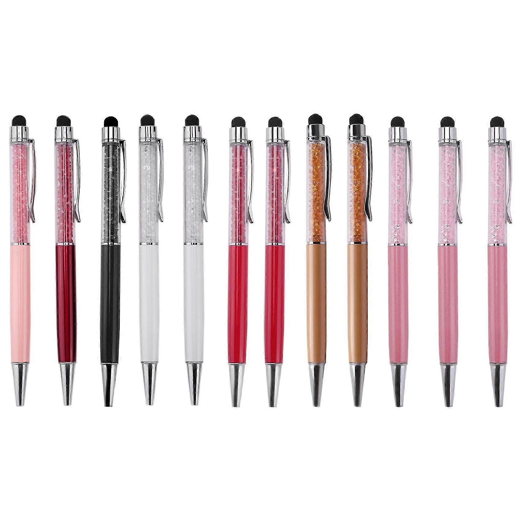 12pcs/pack Bling Bling 2-in-1 Slim Crystal Diamond Stylus Pen And Ink Ballpoint Pens (12 Colors)