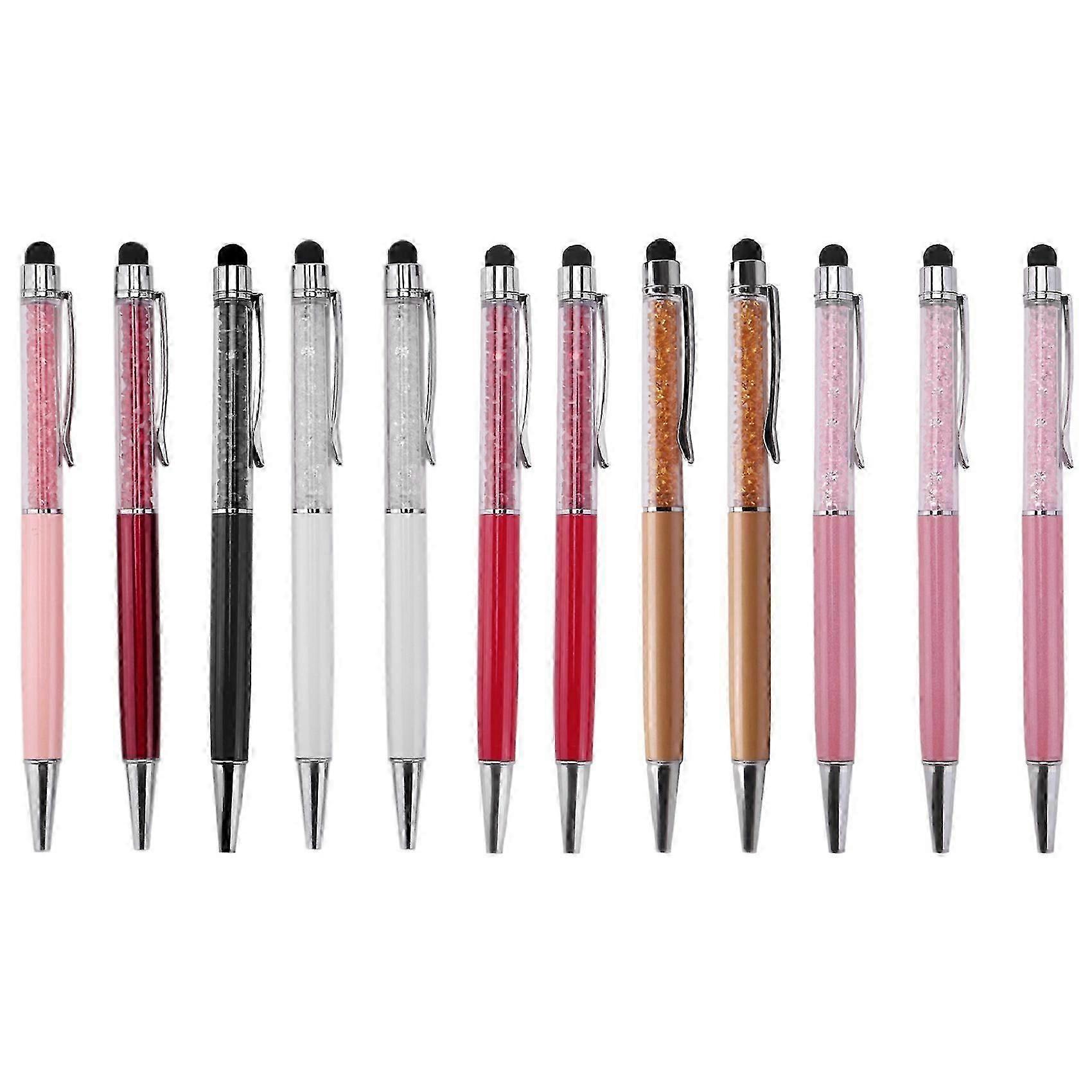 12Pcs/Pack Bling Bling 2-In-1 Slim Crystal Diamond Stylus Pen and Ink Ballpoint Pens (12 Colors)