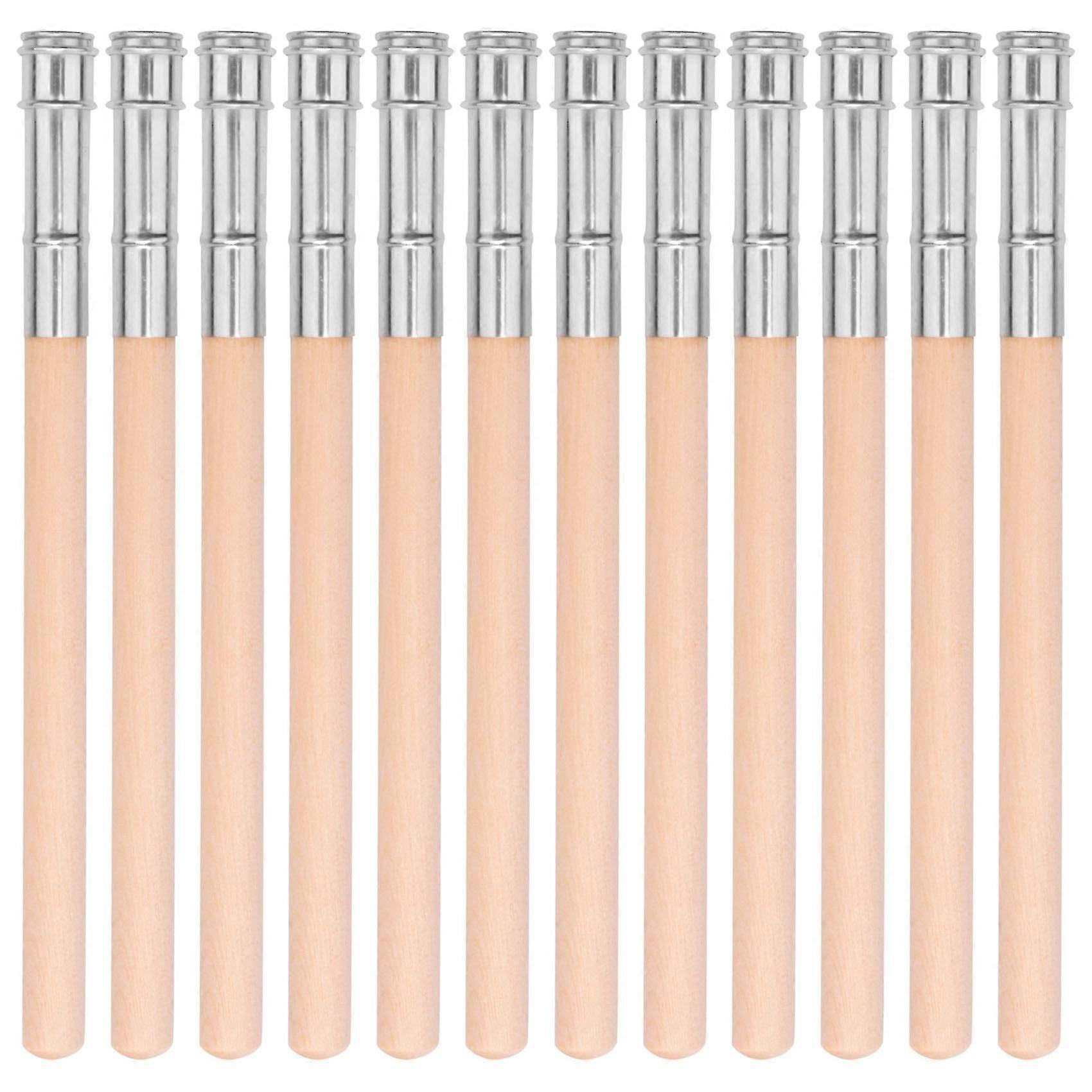 12 Pieces Wooden Pencil Extenders Art Pencil Lengthener Crayon Extension with Aluminum Handle for School Office Supplies