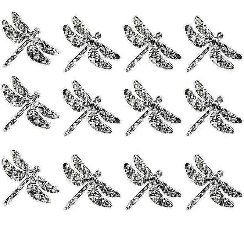 12 Pcs Dragonfly Napkin Rings, Zinc Alloy Napkin Buckle Silver Napkin Ring For Hotel Wedding Holida (haoyi)