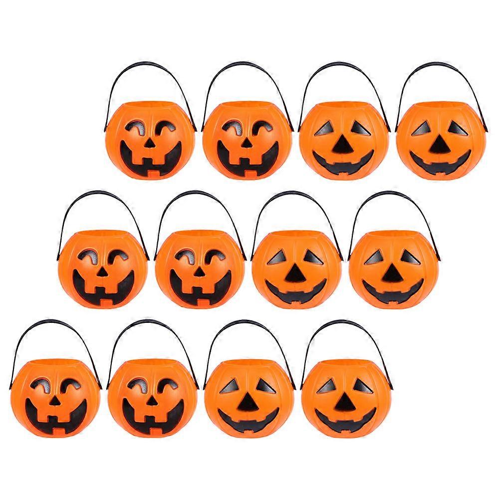 12pcs Halloween Pumpkin Buckets with Handle, Lightweight Candy Holders for Party Decorations, Trick Treat Festival Favor Supplies, Random Style and