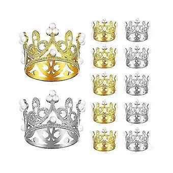 12 Pcs Gold Silver Mini Crown Birthday Cake Topper With Pearl Decor Small Princess Headpiece Baby C