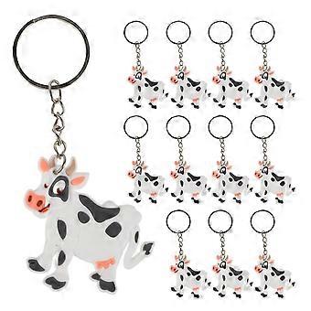 12pcs Cute Cow Keychains Cartoon Animal Key Rings for Birthday Party Favors, Bag Decorations, Lightweight Portable Charms for Adults