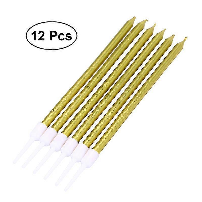 12pcs glitter paint golden slender cake candles for birthday party celebrations(6 pcs a pack, golden)