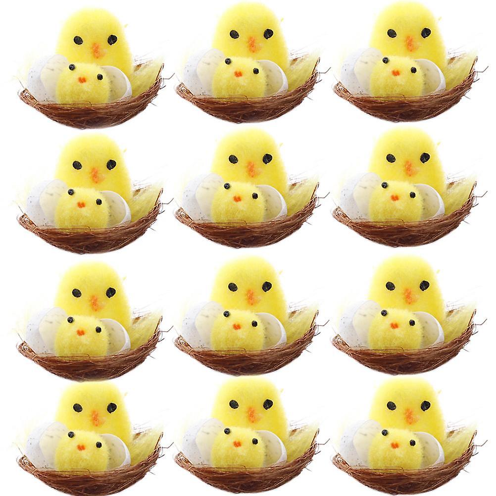 12PCS Mini Easter Chicks Yellow Easter Decoration Toy Simulation Mini Chicks Spring Home Garden Decor Party Favors and Gifts for Kids