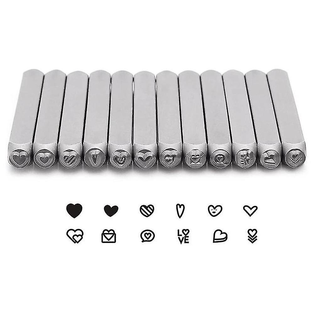 12 Piece Heart-shaped (love) Metal Stamp Set, 3mm (1/8 Inch) Metal Punch Stamp Kit For Metal Punchi
