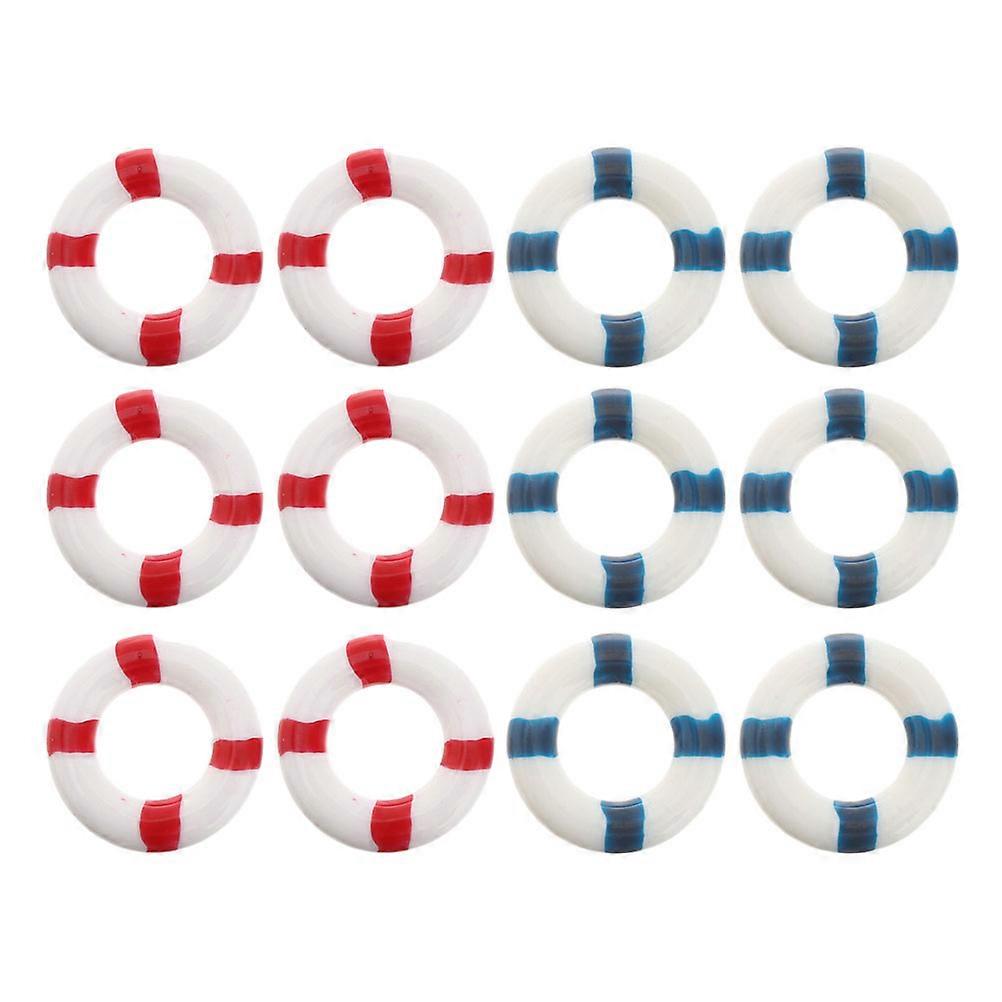 12pcs Mediterranean Style Miniature Resin Life Buoy Decorative Nautical Swim Ring Ornaments for Garden, Patio, Balcony & Beach Restaurant Decoration