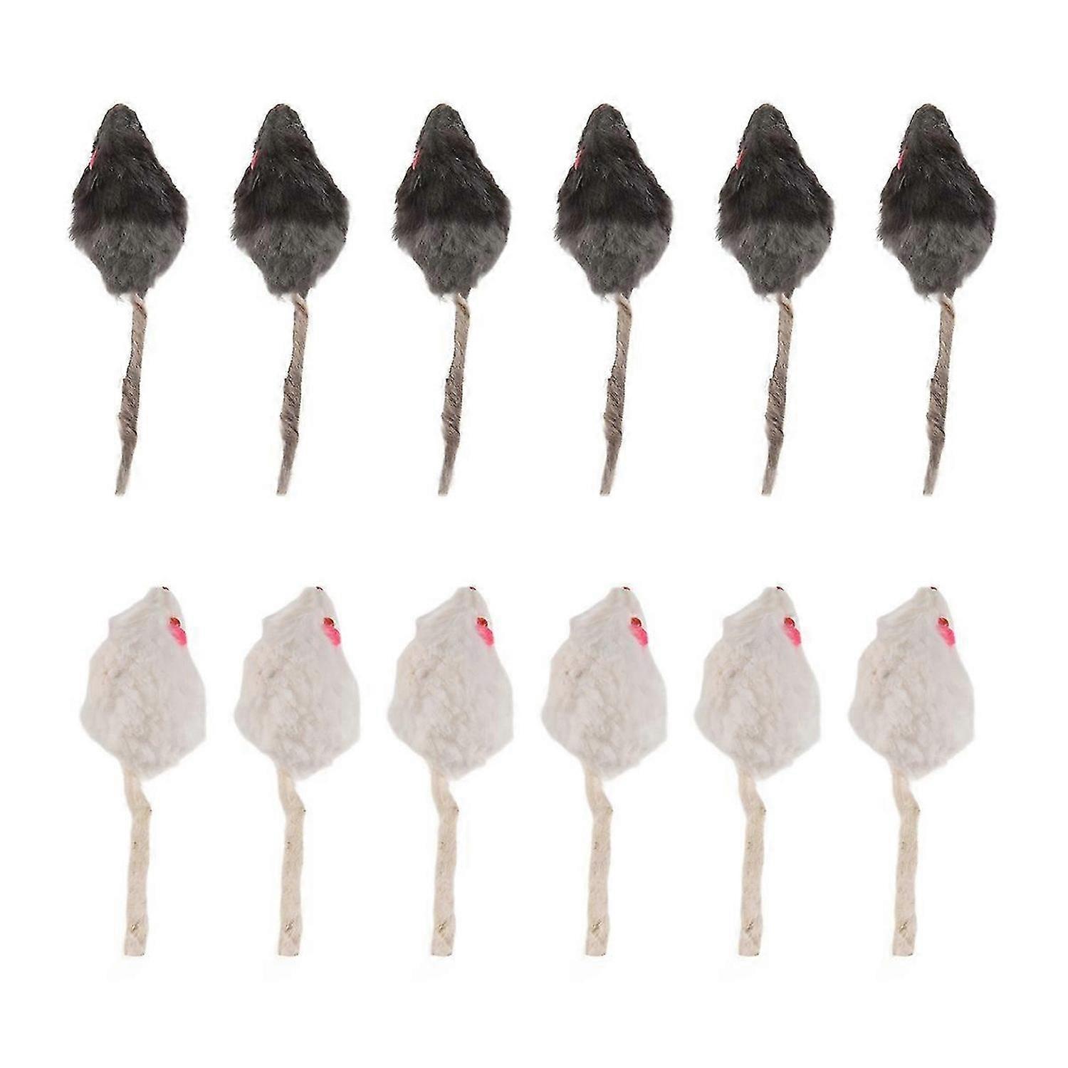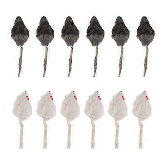 12Pcs False Mouse Cat Pet Toys Cat Long-Haired Tail Mice Sound Rattling Soft Real Rabbit Fur Sound S