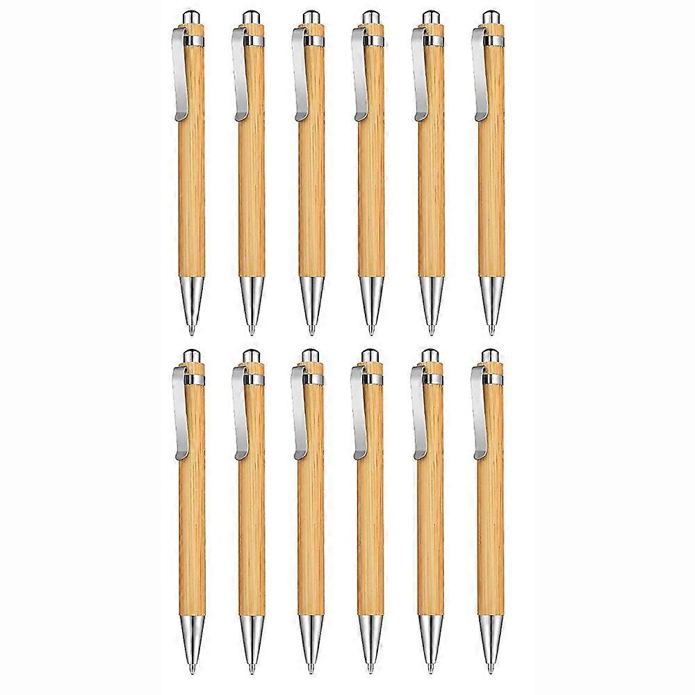 12 Pieces Bamboo Retractable Ballpoint Pen Black Ink 1 mm Office Pens