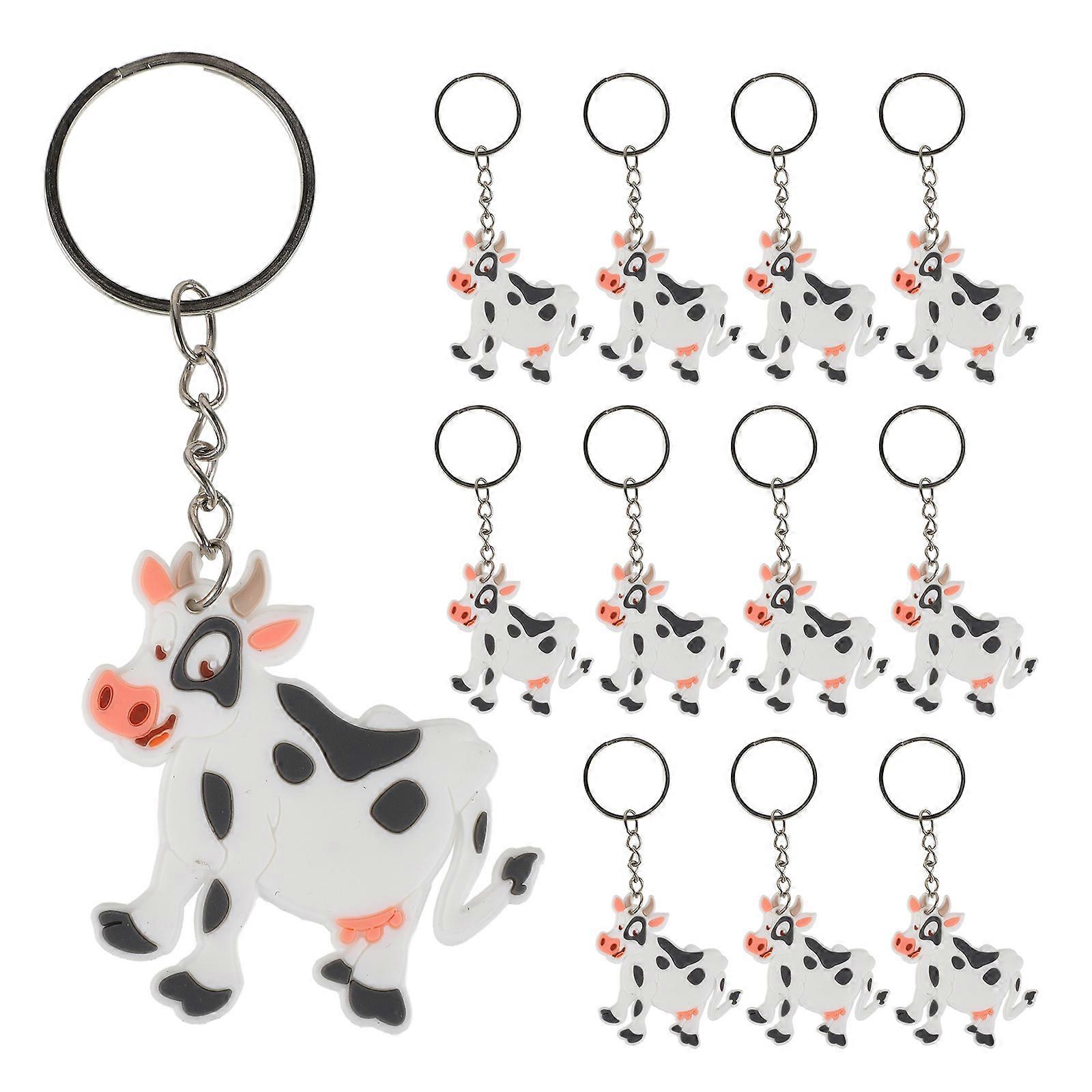 12PCS Cute Cartoon Cow Keychains Animal Pendants for Party Favors Decoration Lightweight Reliable Key Rings