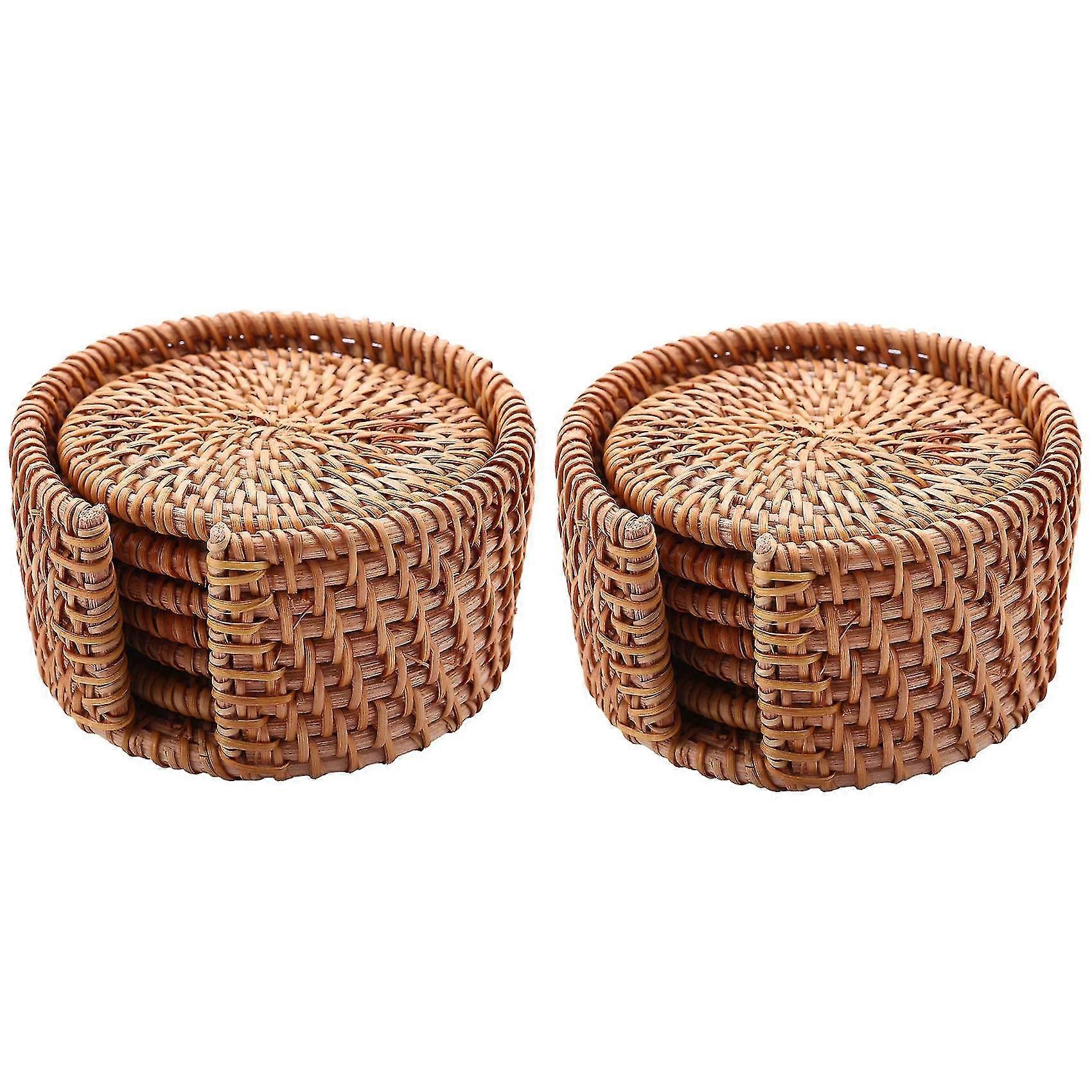 12pcs/ Drink Coasters Set For Kungfu Tea Accessories Round Tableware Placemat Dish Mat Rattan Weave