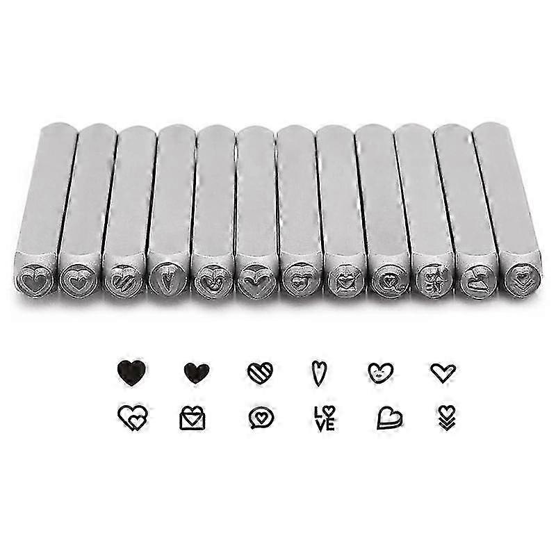 12 Piece Heart-Shaped Metal Stamp Set, 3mm (1/8 Inch) Punch Stamp Kit for Metal Working