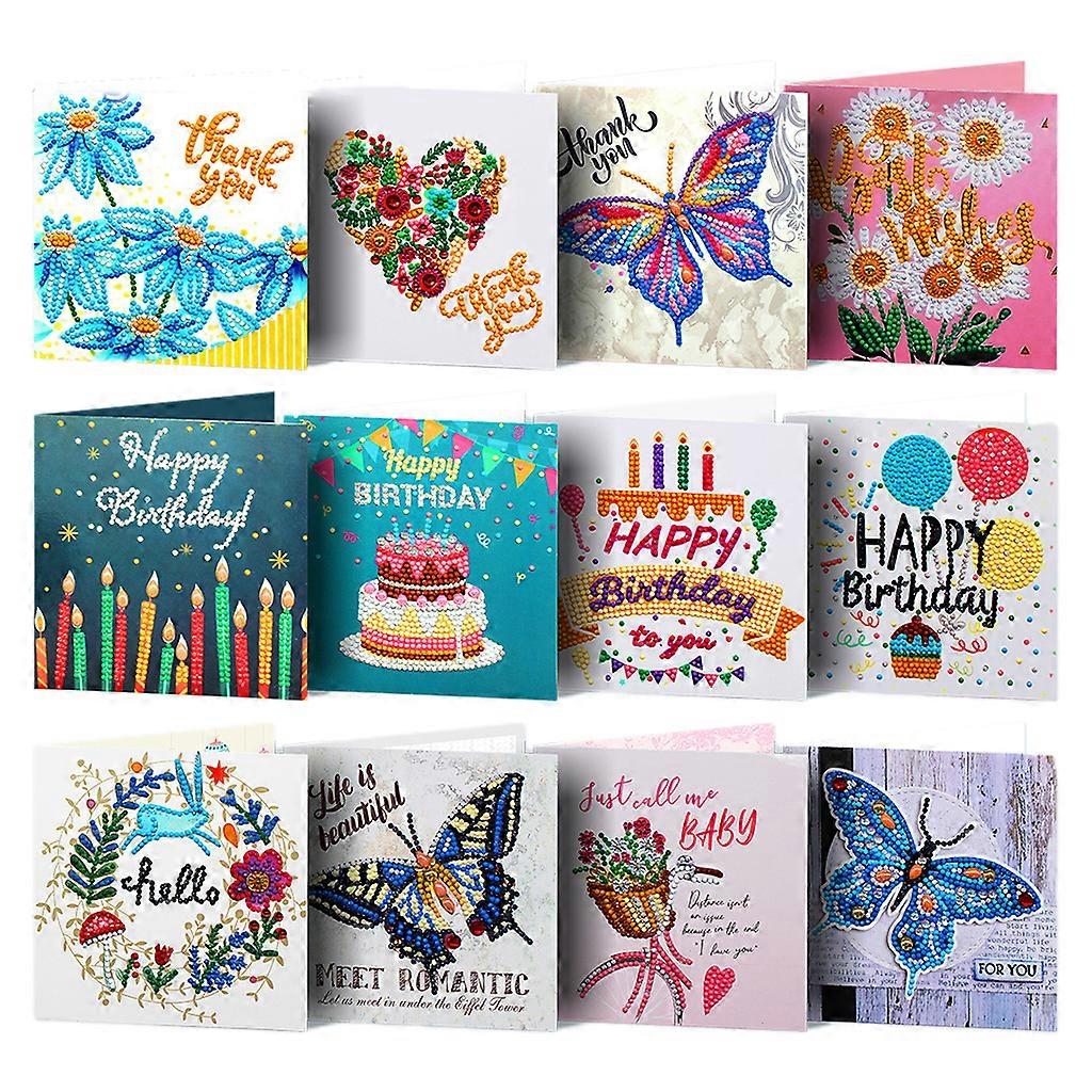 12 Pcs/Set DIY Diamond Painted Birthday Cards Holiday Thank You Greeting Cards